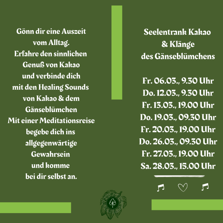 Mit dem Seelentrank Kakao tief ins Herz gehen und liebevoll den Klängen des Gänseblümchens lauschen