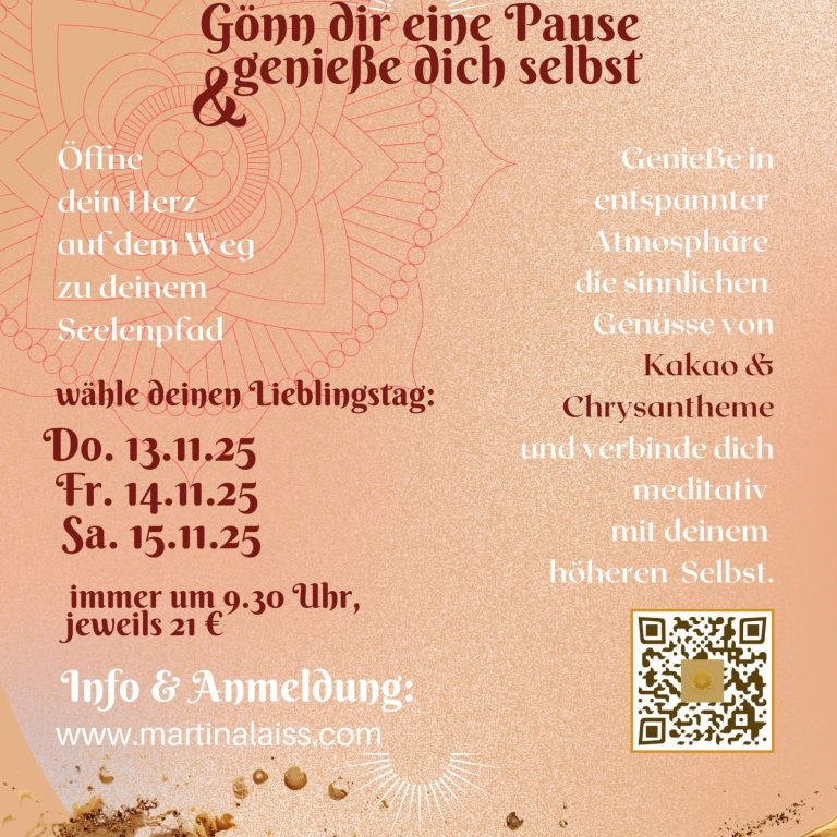 Mit allen Sinnen Mama Kakao genießen und jeder darf für sich auf die Reise zu seinem liebevollen Selbst begeben.
