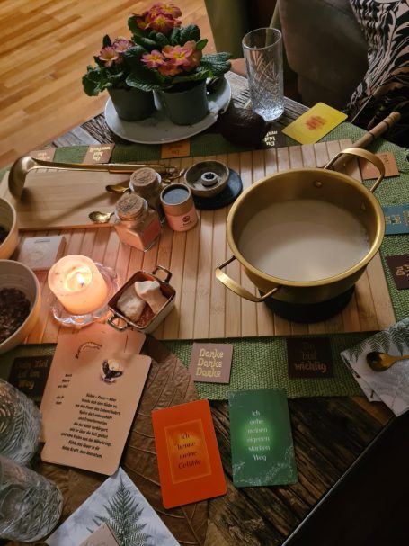 Anhand von inspirierendem Karten ziehen erfahren wir, mit welchem Thema wir mit gestärktem Herzen in den Alltag hinaustreten dürfen.