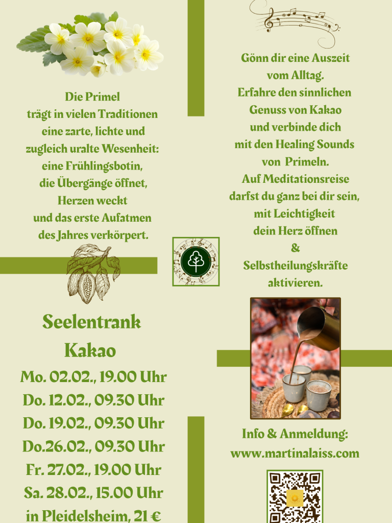 Mit dem Seelentrank Kakao tief ins Herz gehen und liebevoll den Klängen des Gänseblümchens lauschen